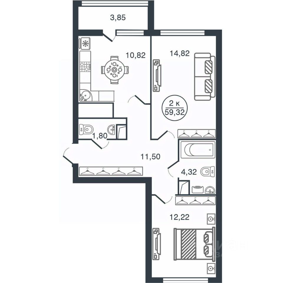 59 м² · Этаж 15 из 16