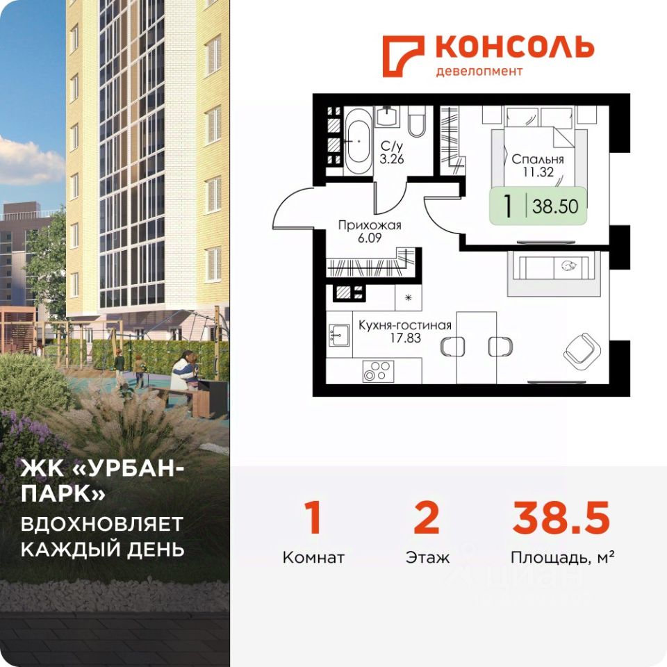 38 м² · Этаж 2 из 4