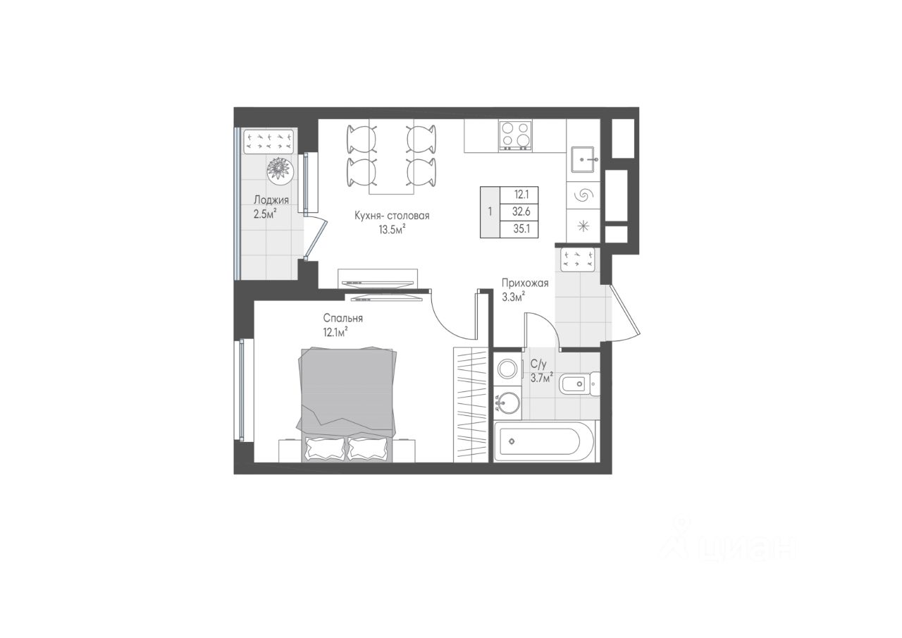 35 м² · Этаж 2 из 10