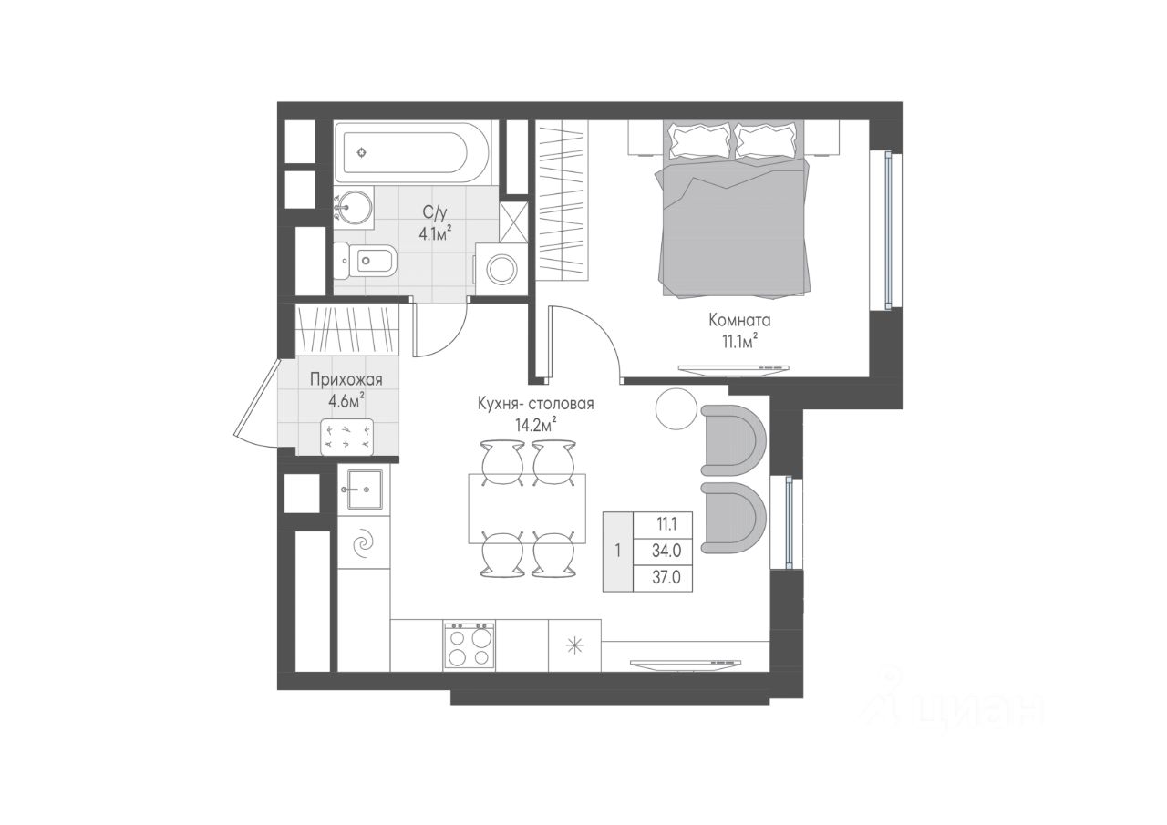 34 м² · Этаж 3 из 10
