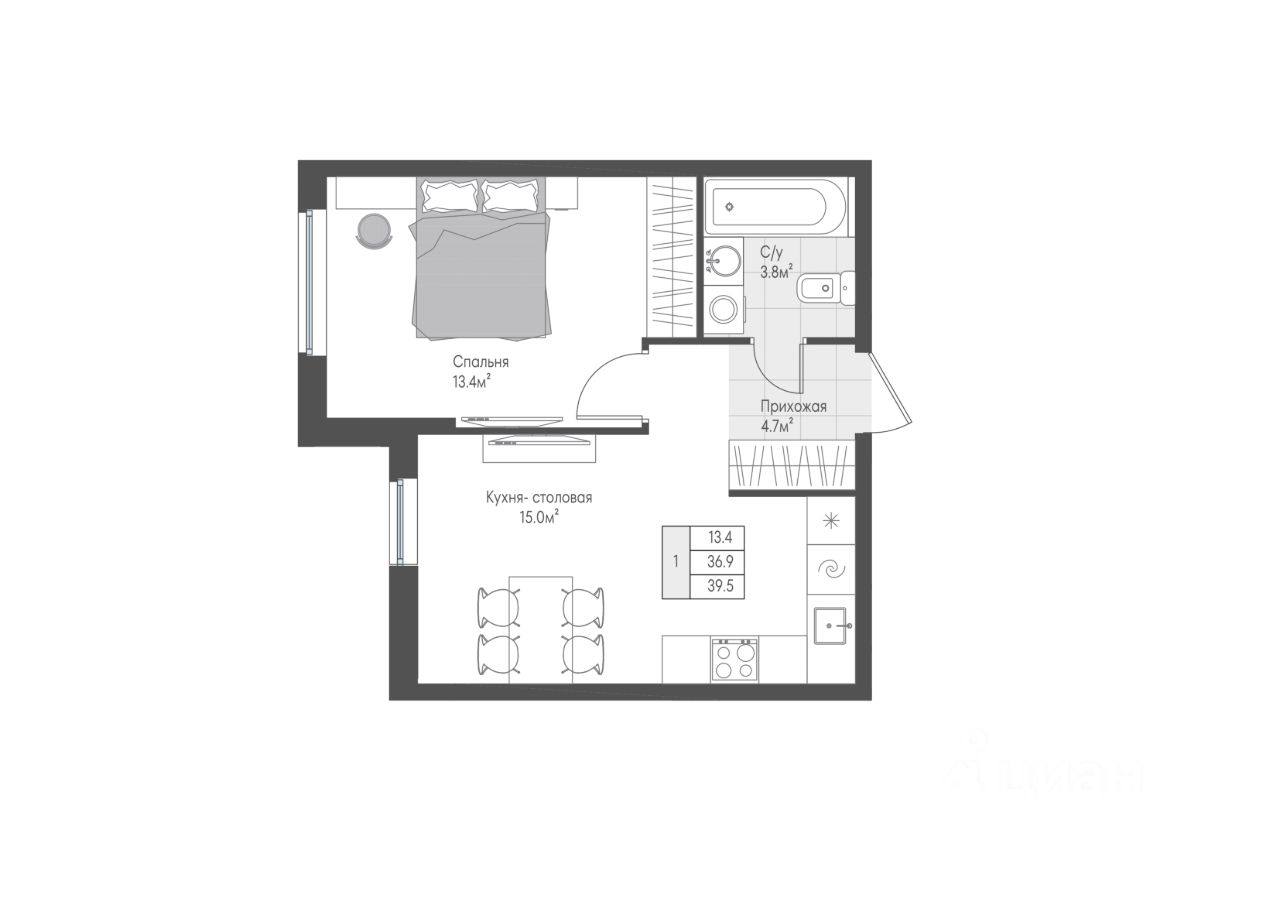 39 м² · Этаж 4 из 10