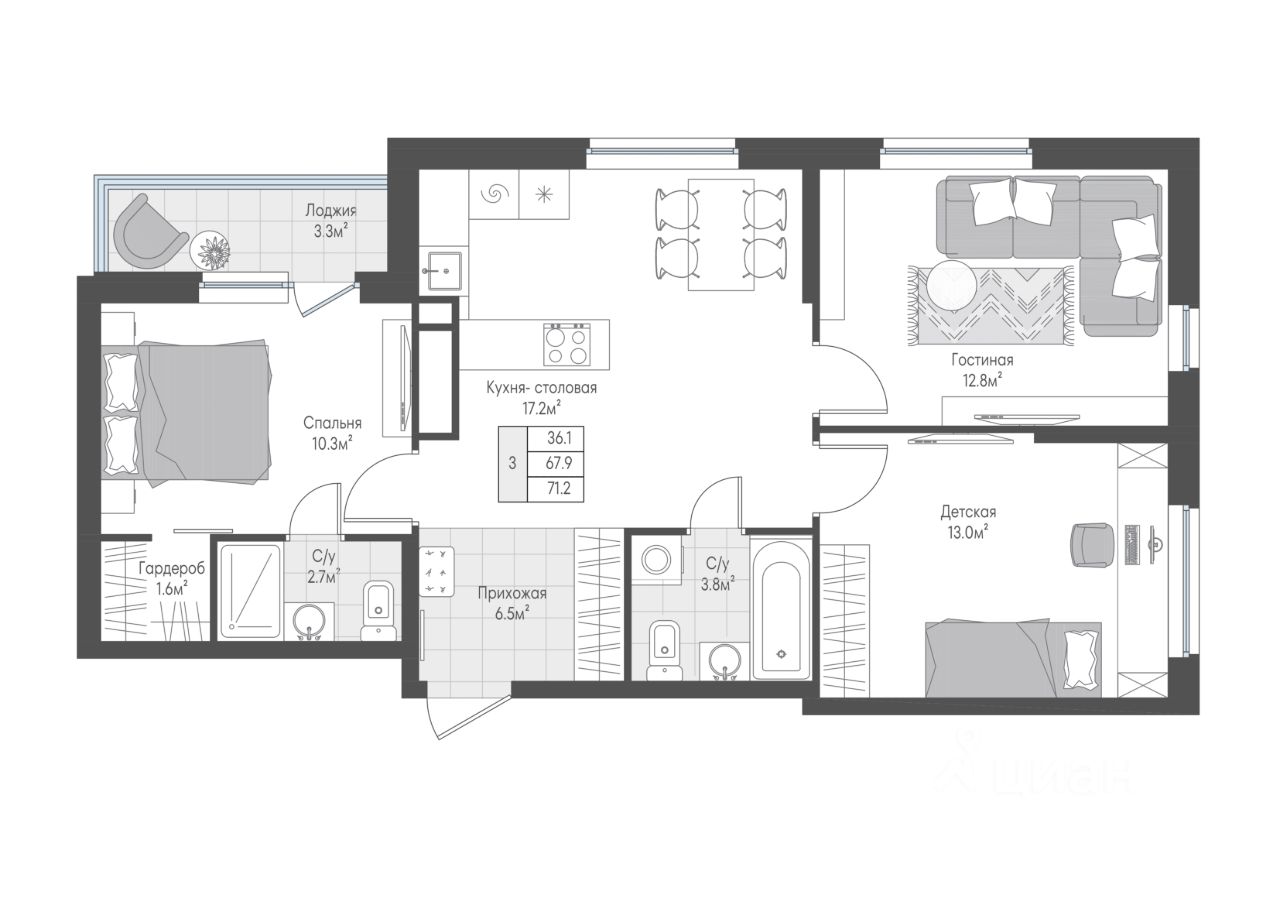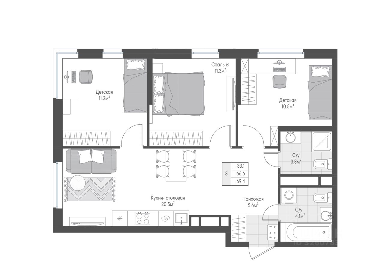 33 м² · Этаж 3 из 10