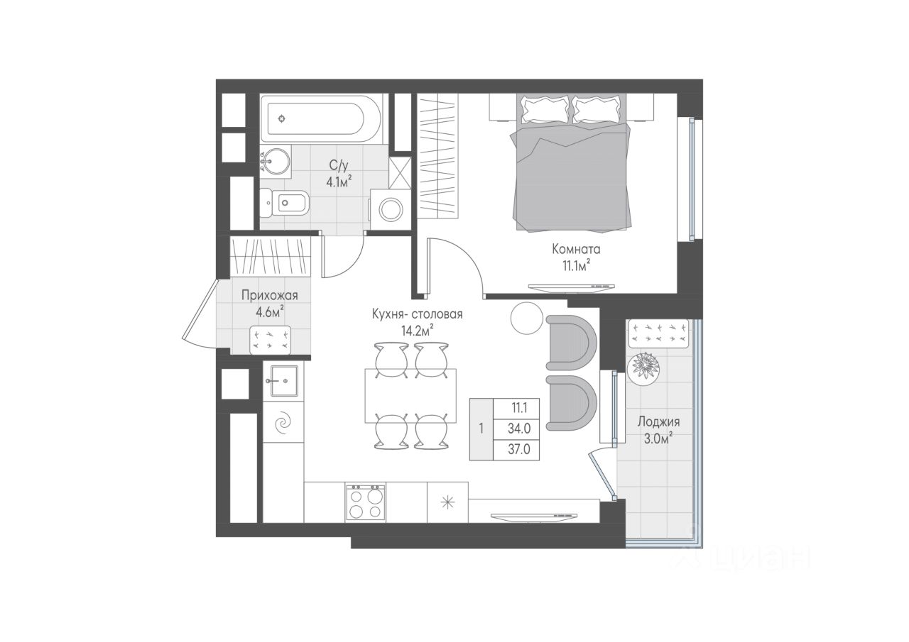 37 м² · Этаж 3 из 10