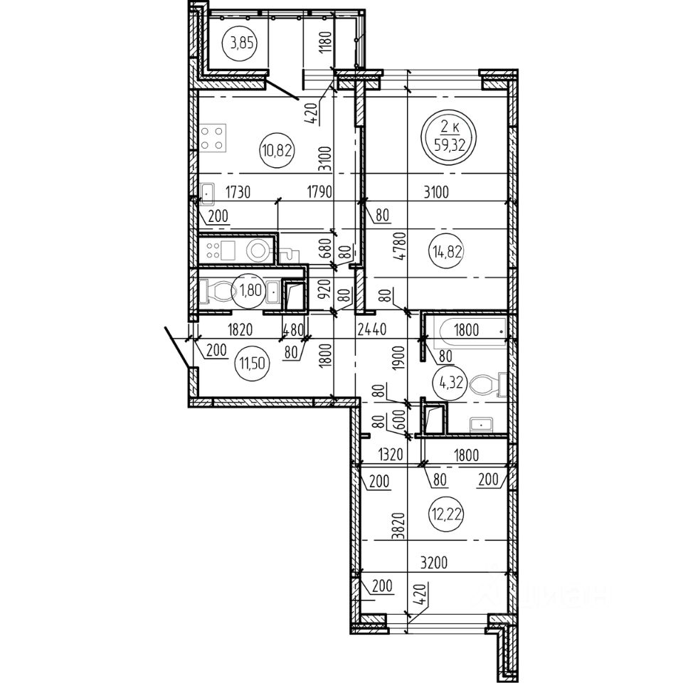 59 м² · Этаж 9 из 16