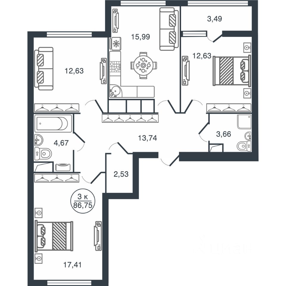 86 м² · Этаж 3 из 16