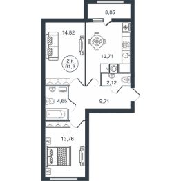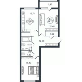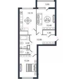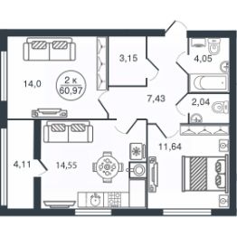2-к, Бурашевское шоссе, 60 Показать на карте