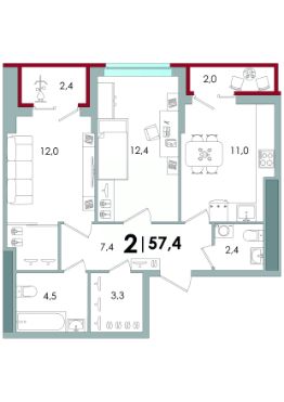 2-к квартира Показать на карте