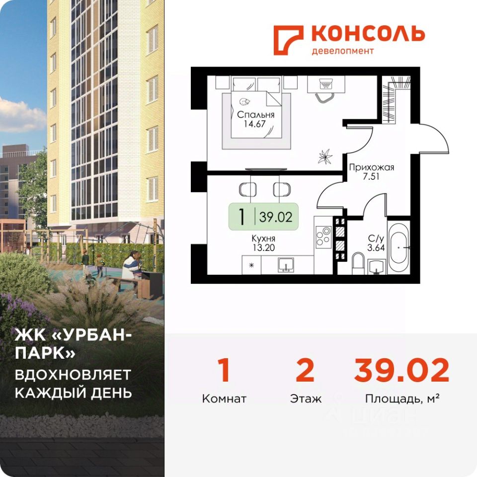 Продается однокомнатная квартира 9 без отделки в ЖК ''Урбан Парк'' площадью 39.02 на 2 этаже от застройщика Консоль девелопмент. Жилой комплекс ''Урбан парк'' располагается в уникальной локации города Твери — на пересечении трех улиц: бульвара Цанова, улицы Коминтерна и Зеленого проезда. В основе архитектурной концепции жилого квартала ''Урбан парк'' лежит идеальное сочетание современного урбанистического стиля, оригинальных фасадов с яркими акцентами и функциональности зданий. Архитектура и продуманные планировочные решения, зоны отдыха, детали интерьера входных групп и места общего пользования создают абсолютно комфортную среду. Жилые дома образуют квартал, оборудованный детскими и спортивными площадками. Связующим звеном всех этапов застройки станет активный пешеходный променад.