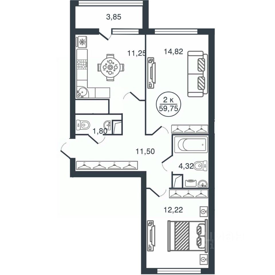 2-к, Бурашевское шоссе, 60 Показать на карте