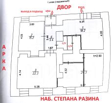 Собственник продаёт офисное помещение общей площадью 91,2 кв.м. на первом этаже 3-х этажного жилого дома, расположенного на первой линии набережной. Имеет 2 входа со стороны двора: основной и запасный через подъезд, типовой офисный ремонт, высоту потолков 2,9 м., пожарную и охранную сигнализации, 2 сан. узла (см. план), разводку воды и канализации во всех кабинетах, волоконно-оптическую линию связи. Цена 14 200 000 рублей.