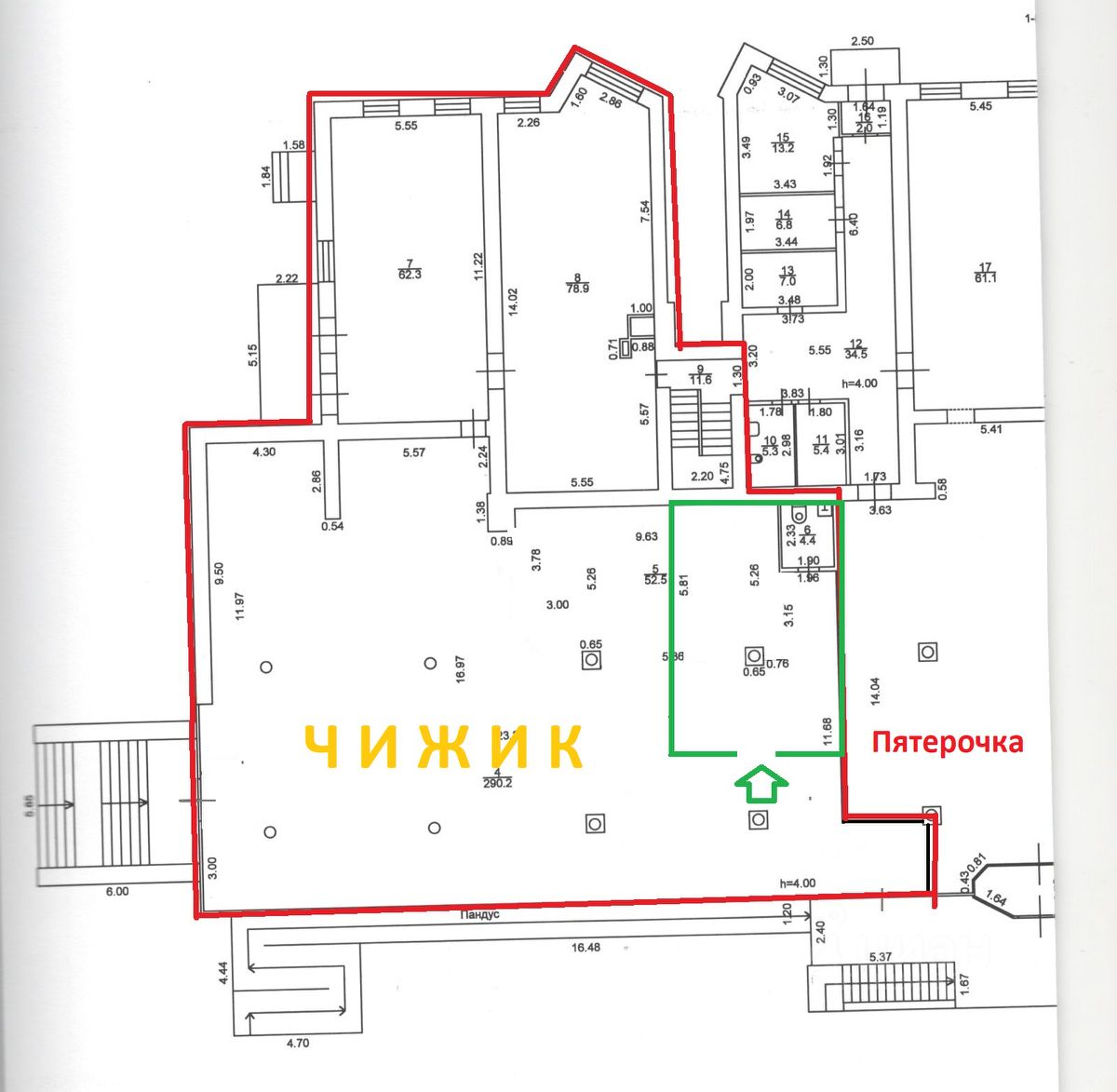 Торговый отдел 71,2 м2. Входная группа совмещенная с магазином Чижик. Контур аренды выгорожен. Рядом вход в магазин Пятерочка. Пол- плитка. Санузел. От собственника. Без комиссии.