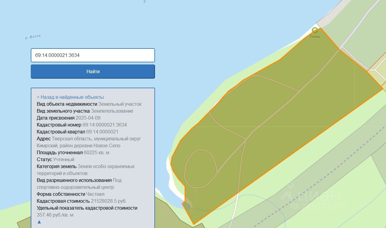 69:14:0000021:3634 Продается земельный участок на берегу реки Волга. Первая береговая линия (песчанный пляж). Газ и электричество по границе. Подходит для строительства коттеджного поселка, базы отдыха, спортивно-оздоровительного центра.