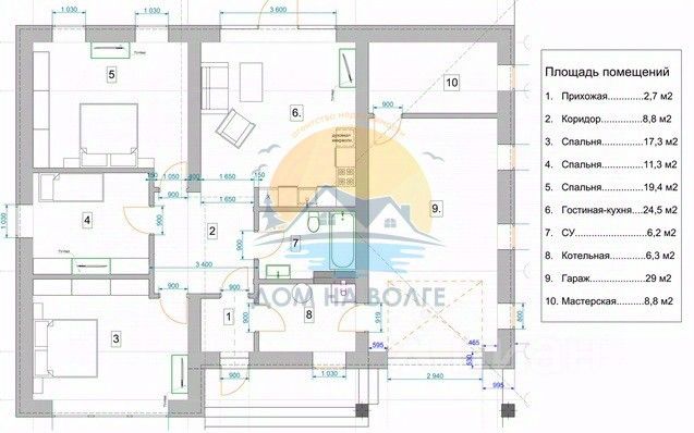 О ДОМЕ: Одноэтажный дом с отделкой White Box , общая площадь 144,2 кв. м., гараж 29 кв. м., кухня-гостиная 24,5 кв. м., 3 спальни - 19,4 кв. м., 17,3 кв. м., 11,3 кв. м. Подведен газ магистральный, электричество, септик, скважина, охраняемая территория. В доме установлена система ''Умный дом'' - управление с телефона.