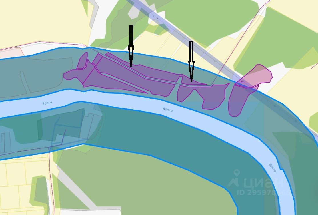 Участок граничит с земельными участками населенных пунктов и находится в 100 м от реки Волга.