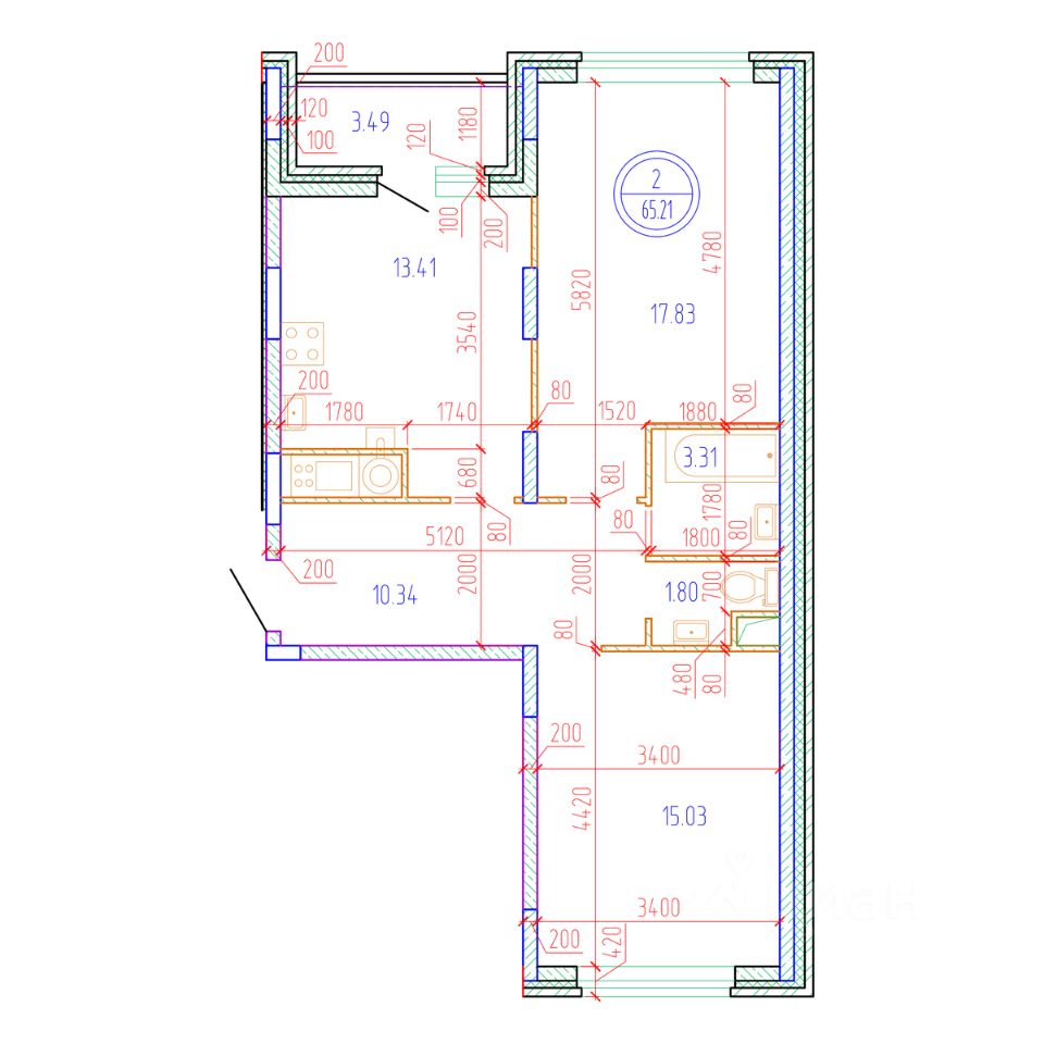 Общая площадь65,21 м2