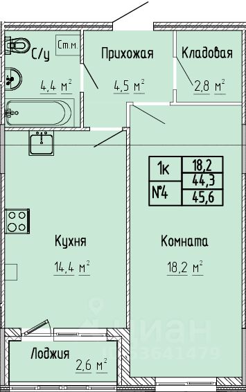 Общая площадь45,5 м2