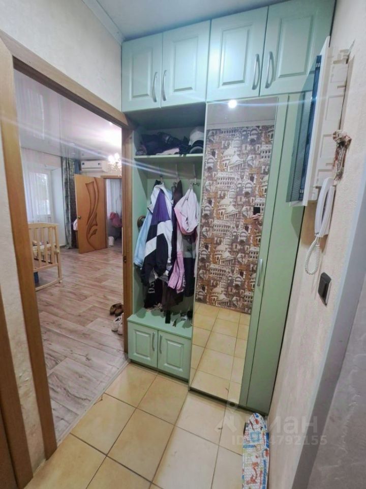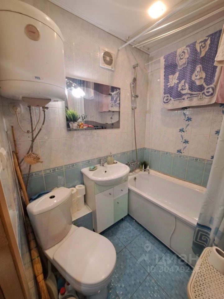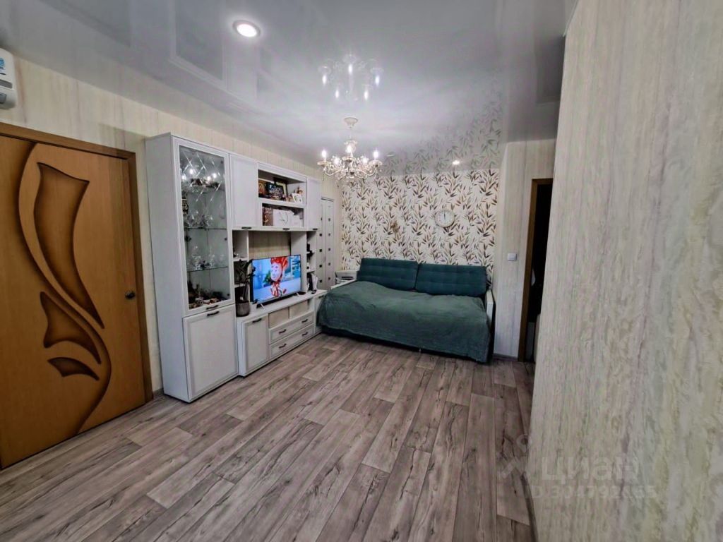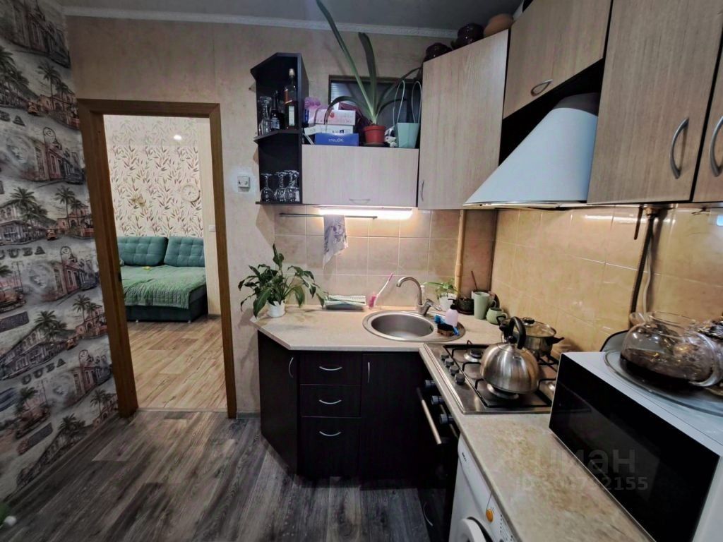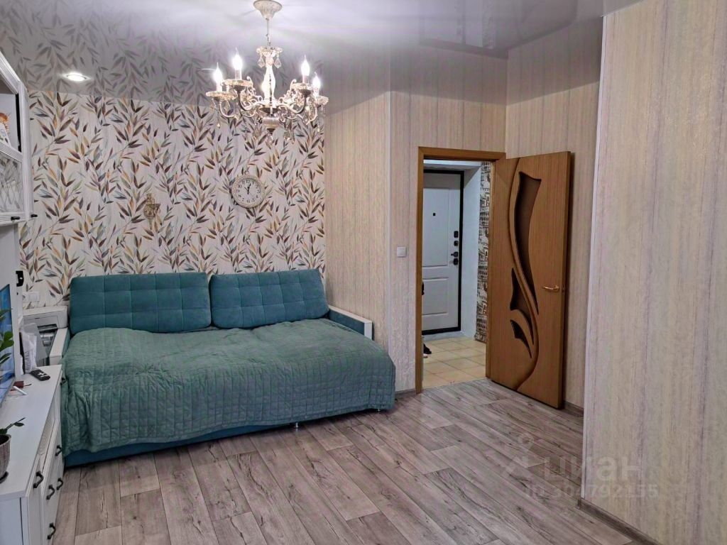 Площадь 42 кв.м., комнаты 17+10 кв.м., кухня 5,9 кв.м., балкон остеклен, утеплен. Остается встроенная кухня, плита, стиральная машина, водонагреватель, кондиционер, встроенный шкаф в маленькой комнате.