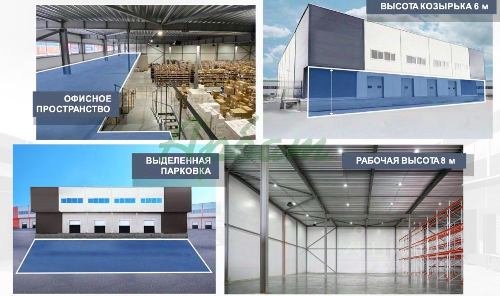 Площадь одного здания: 1500 м2: - производственно-складская зона: 1340 м2 - офисная зона: 160 м2 Высота потолка: 9 м Нагрузка на пол: 5 т/м2 Ворота подъемно-секционные: 4 шт. Пандус: 1,2 м. Каждое здание автономно!