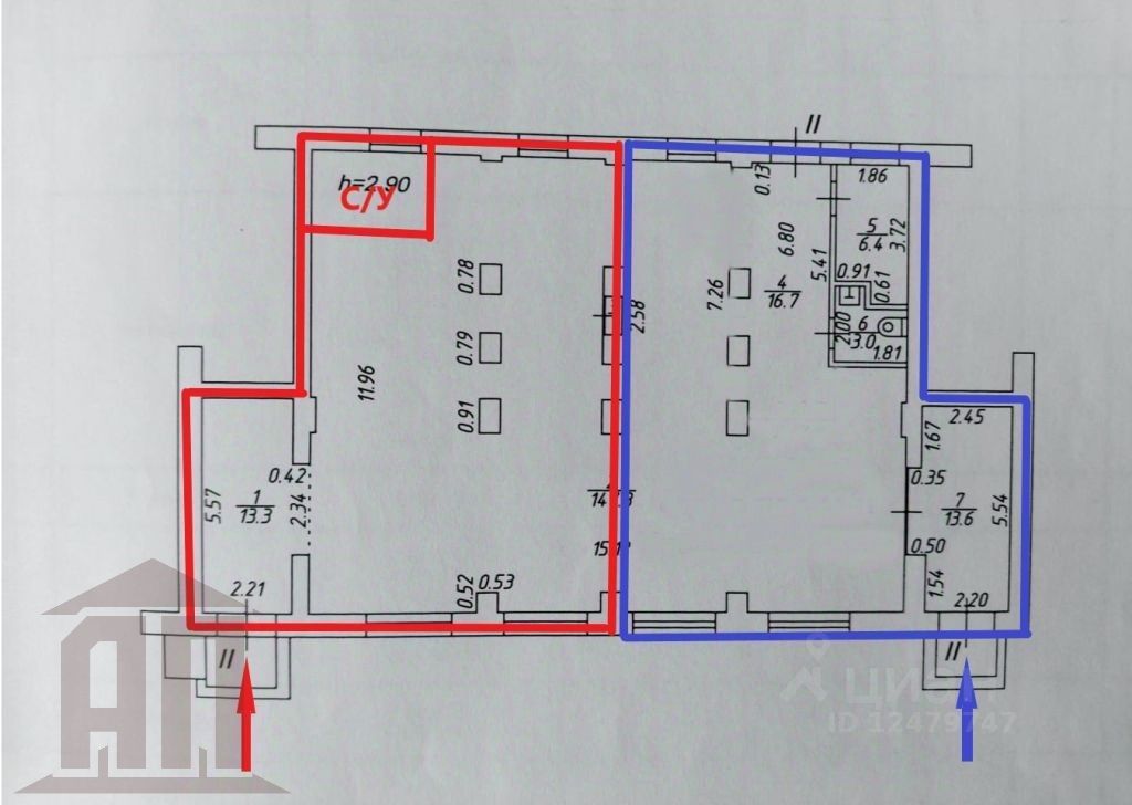 Коммуникации: электрическая мощность 30 КВт, с/у, центральная канализация и отопление, горячая и холодная вода, интернет, высота потолков 2,95 метра.