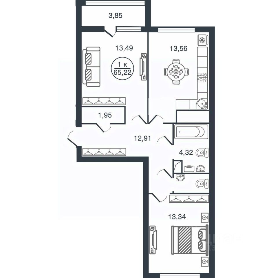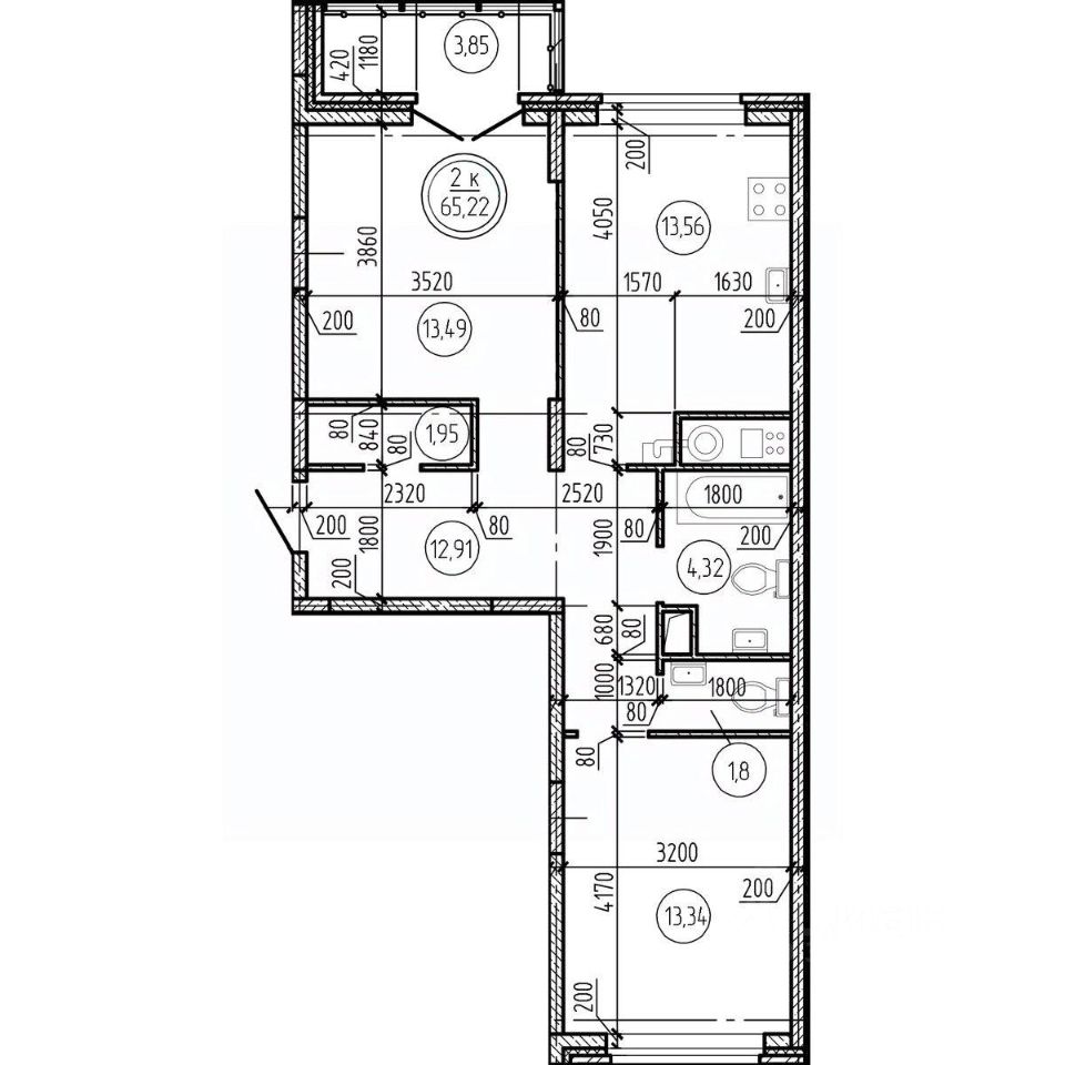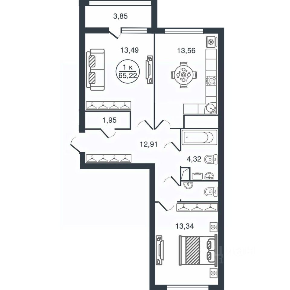 Общая площадь65,22 м2