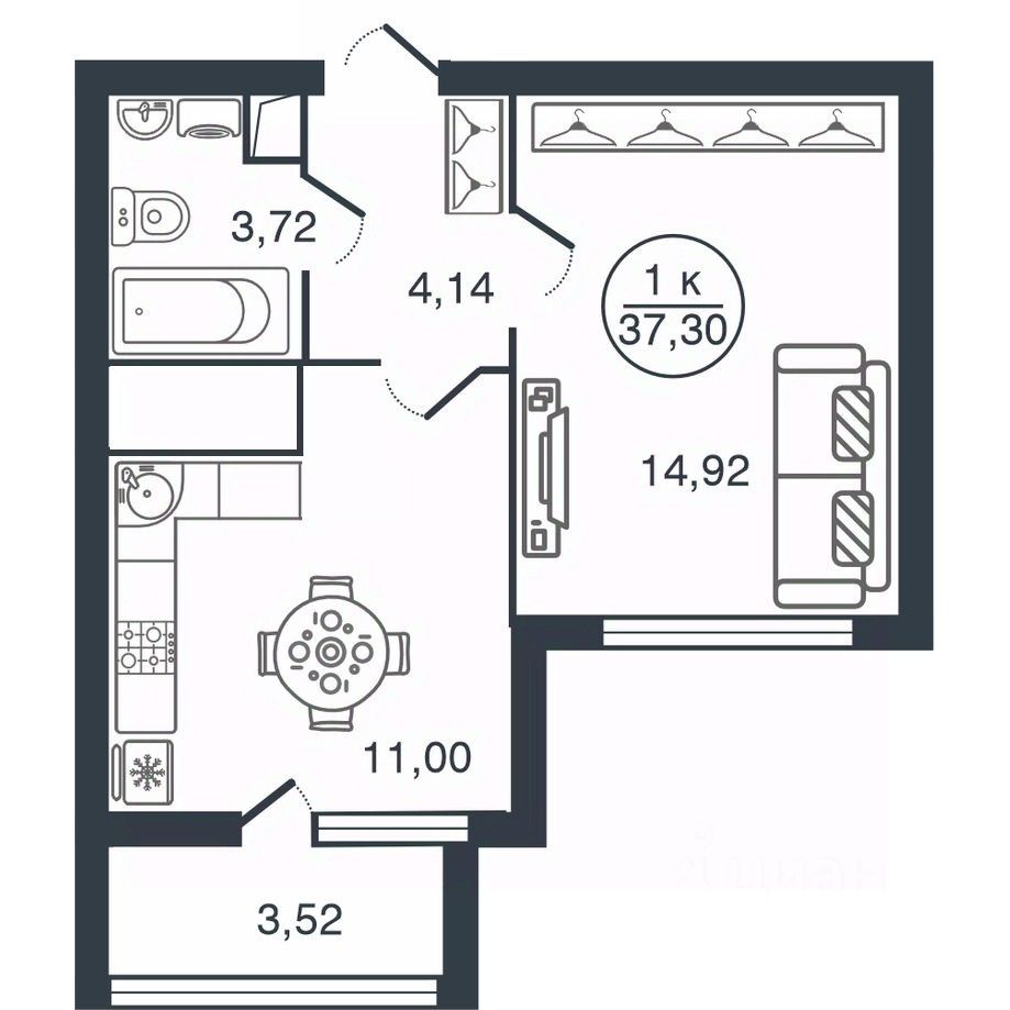 Общая площадь37,3 м2