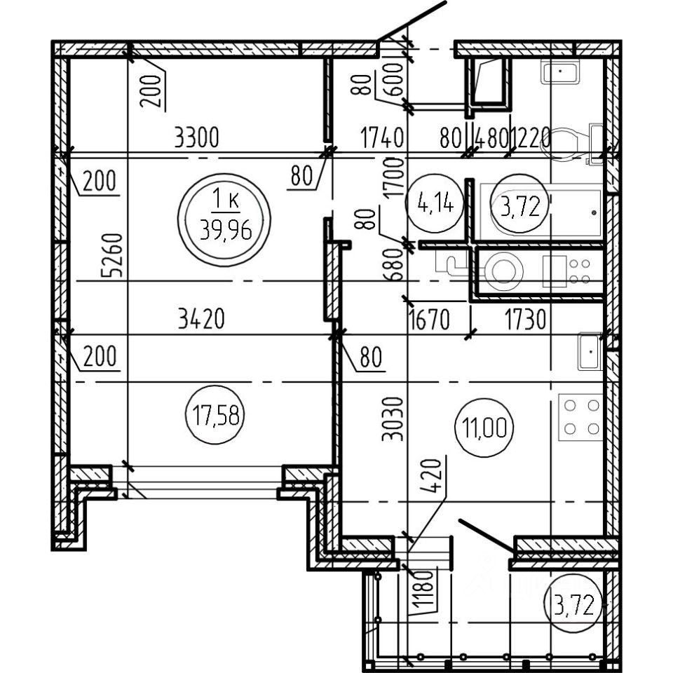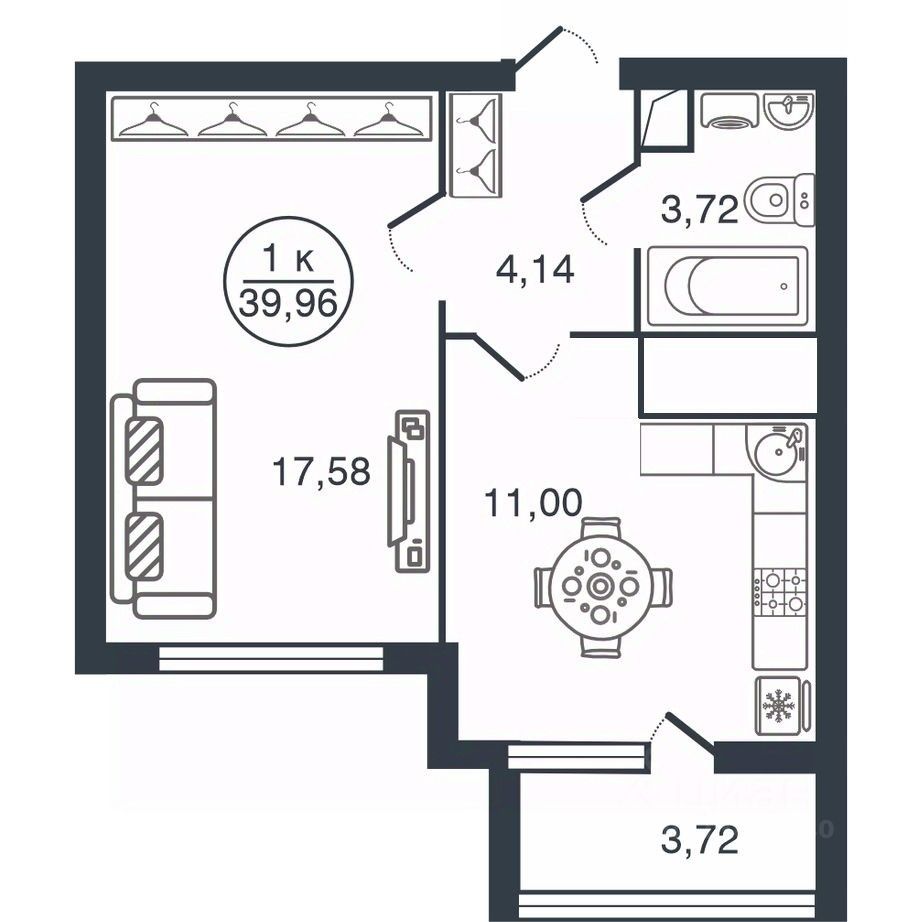 Общая площадь39,96 м2