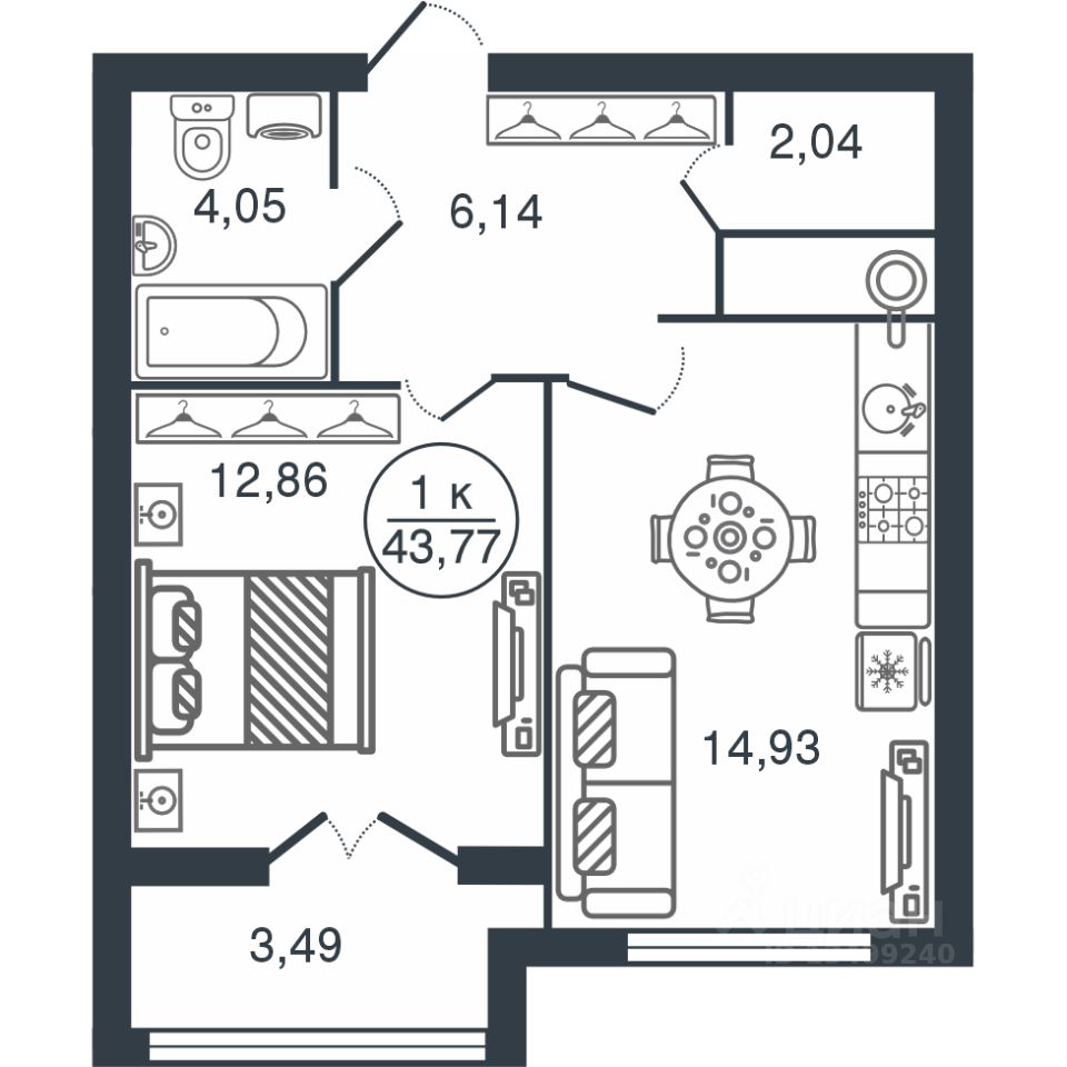 Общая площадь43,77 м2