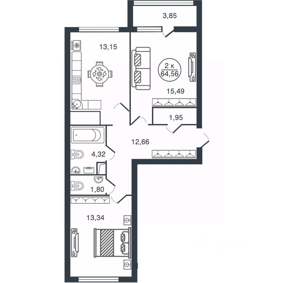 Общая площадь64,56 м2