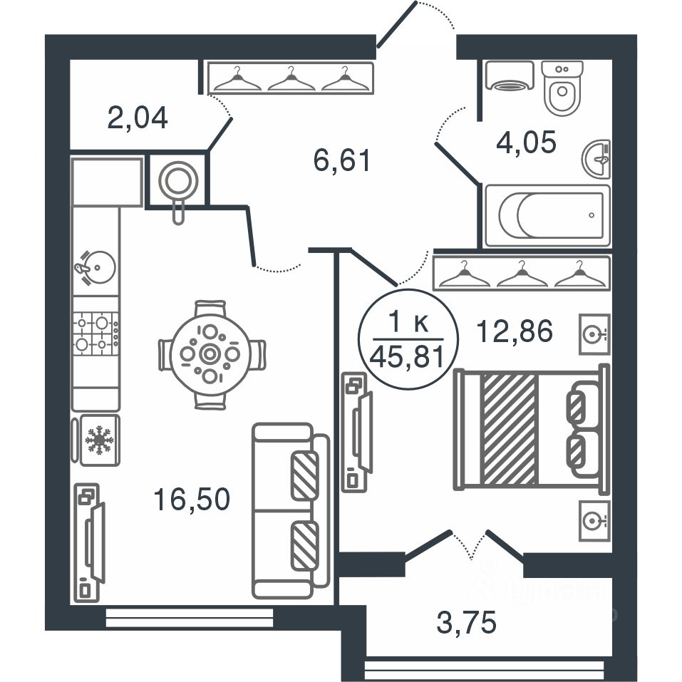 Общая площадь45,81 м2