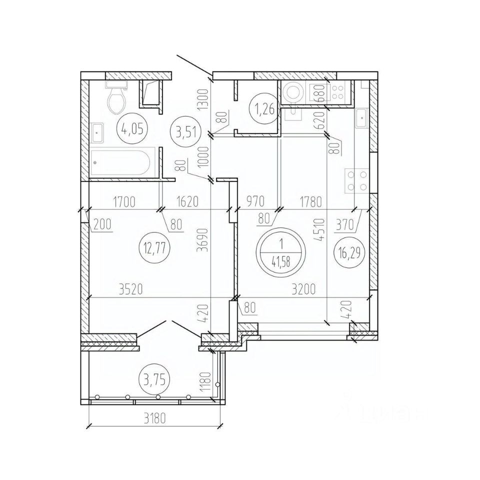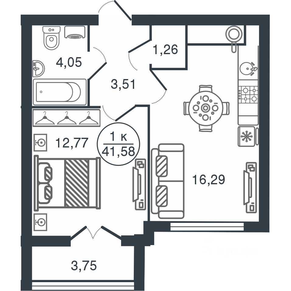 Общая площадь41,58 м2
