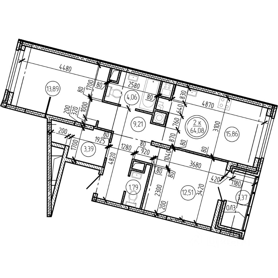 Общая площадь64,08 м2