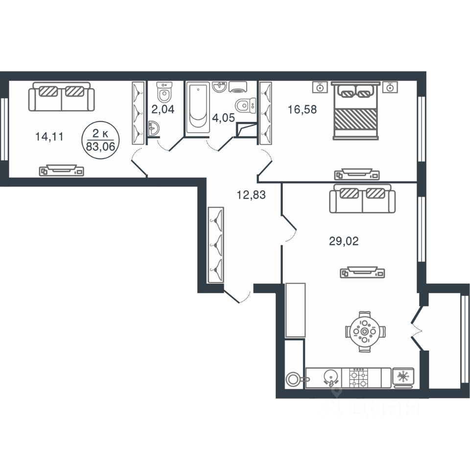 Общая площадь83,06 м2