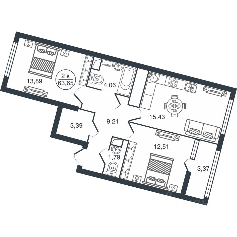 Общая площадь63,65 м2