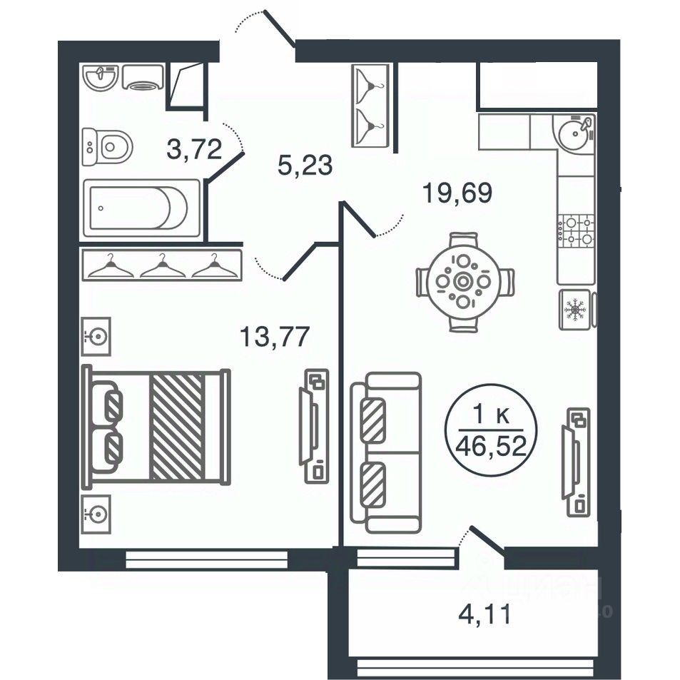 Общая площадь46,52 м2