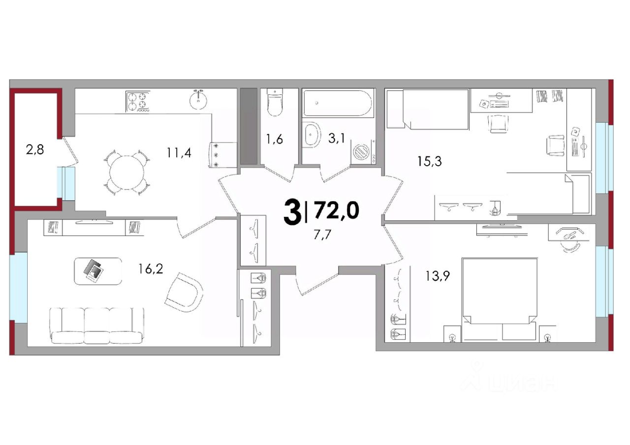 Общая площадь71,3 м2