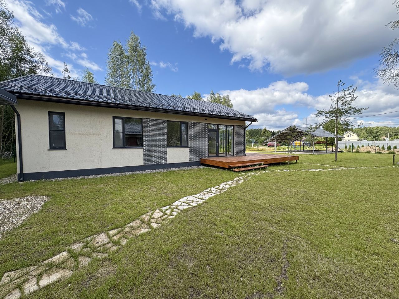 Одноэтажный жилой дом, 96 кв.м., 3 спальни, 2 ванных комнаты, просторная гостиная с выходом на веранду, кухня-столовая, котельная. Дом новый, с современной отделкой.