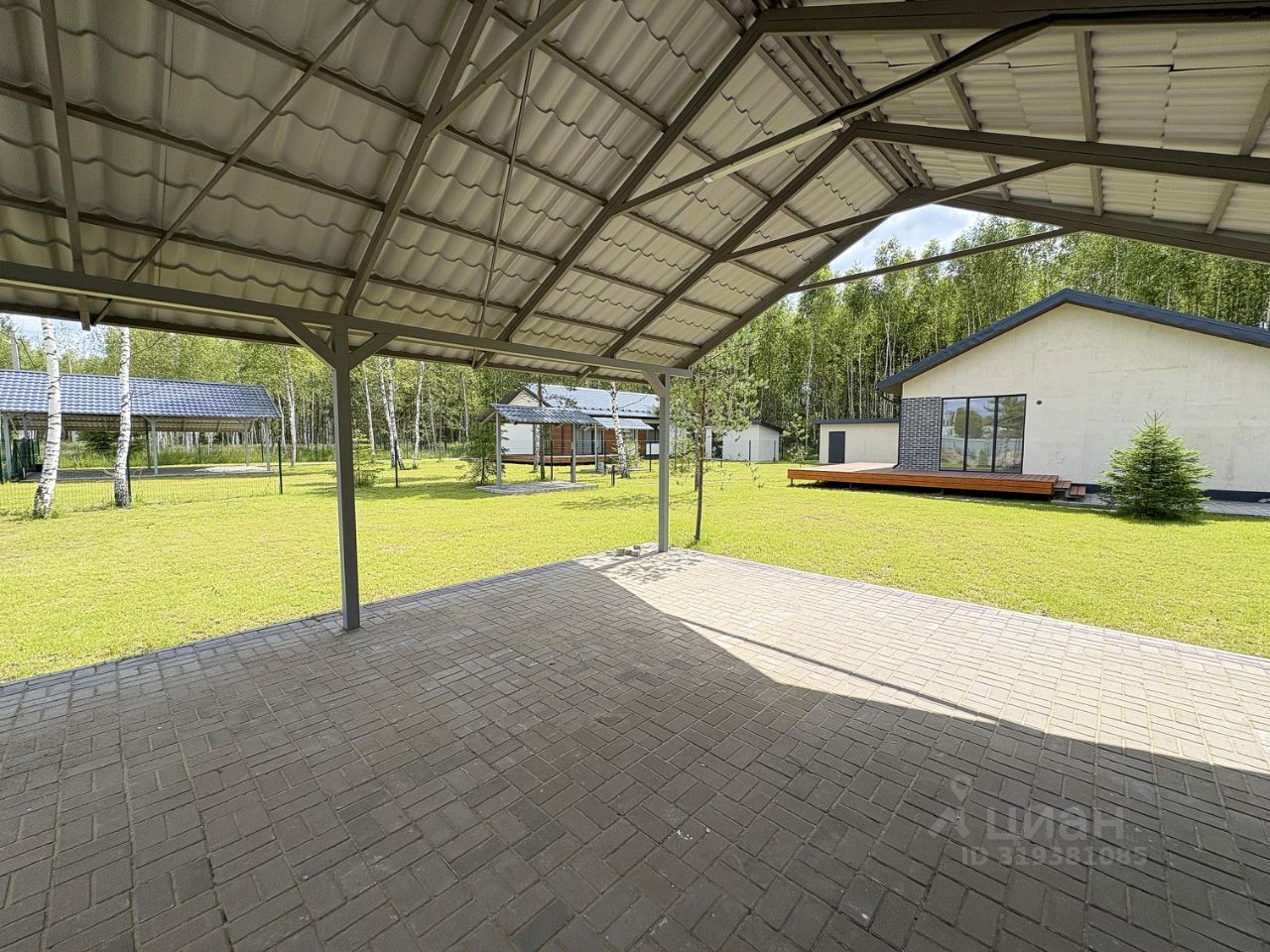 На участке 9,5 соток: навес для машин, хоз.блок для садового инвентаря, газон. Участок огорожен забором.