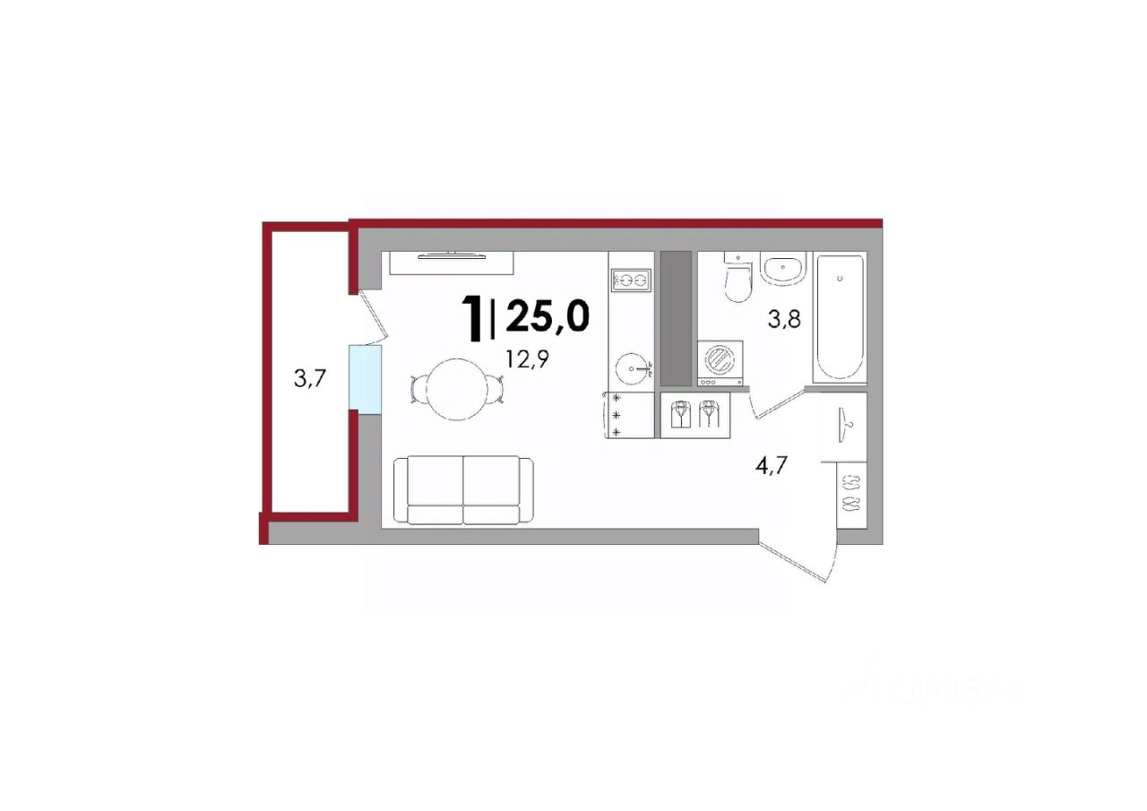Общая площадь25,02 м2