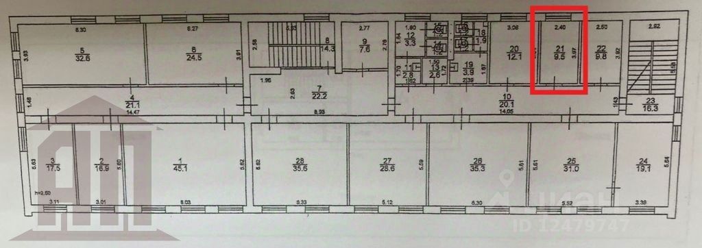 Сдается офисное помещение 9,5 м на 4-м этаже административного здания.