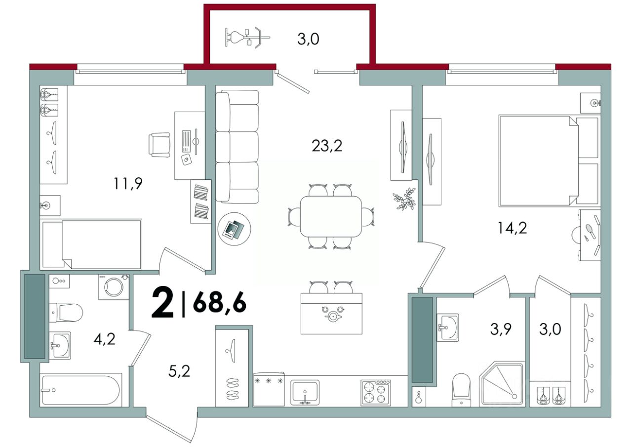 Общая площадь68,6 м2