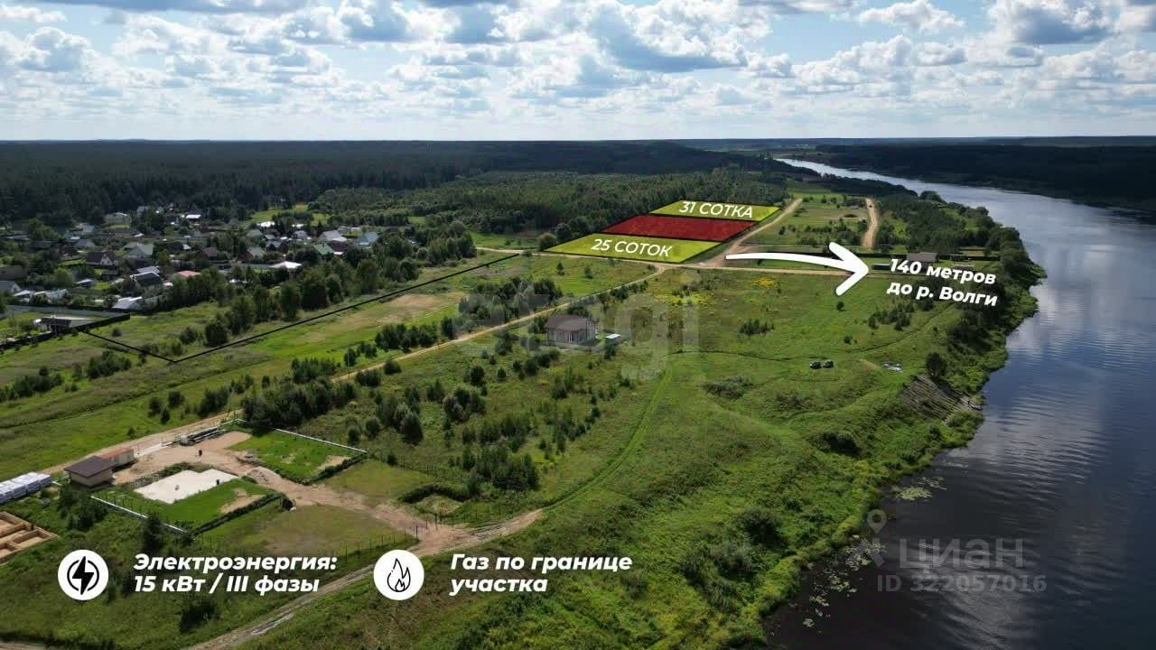 Участок с видом на Волгу в живописной деревне Путилово! Идеальный баланс приватности и легкого доступа к воде! Этот участок расположен на второй линии от Волги, что гарантирует вам спокойный отдых и лучшие панорамные виды с возвышенности. Ключевые характеристики: Площадь: 25,29 соток (2 529 кв.м) Категория: Земли населённых пунктов Разрешенное использование: ИЖС Кадастровый номер: 69:10:0000038:5607 Расстояние до воды: всего 140 метров — до берега рукой подать! Ключевые преимущества: Вид с высоты: Участок расположен на возвышенности второй линии, что открывает панорамный обзор на Волгу шириной 200 метров и сосновый бор. Выше шума воды и больше уединения. Легкий доступ к воде: Всего 140 метров до берега!