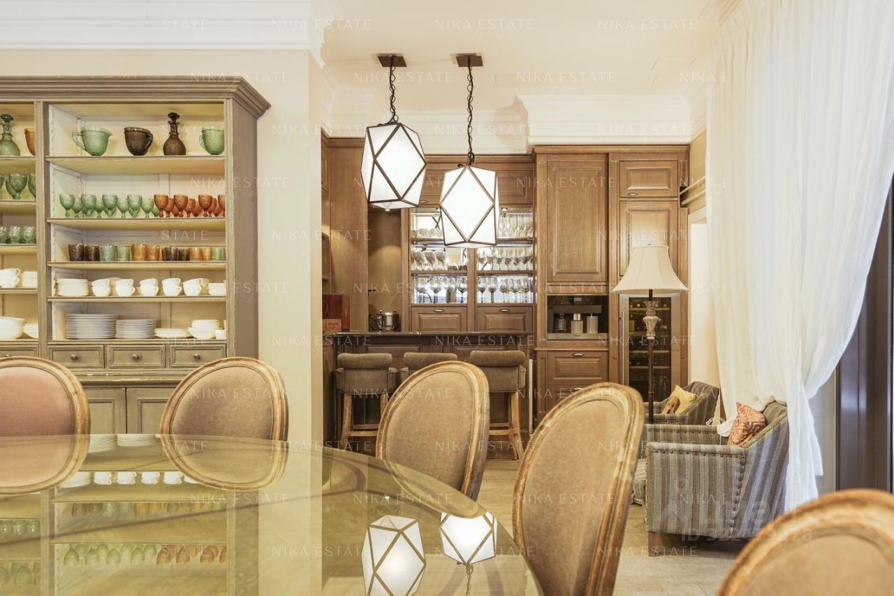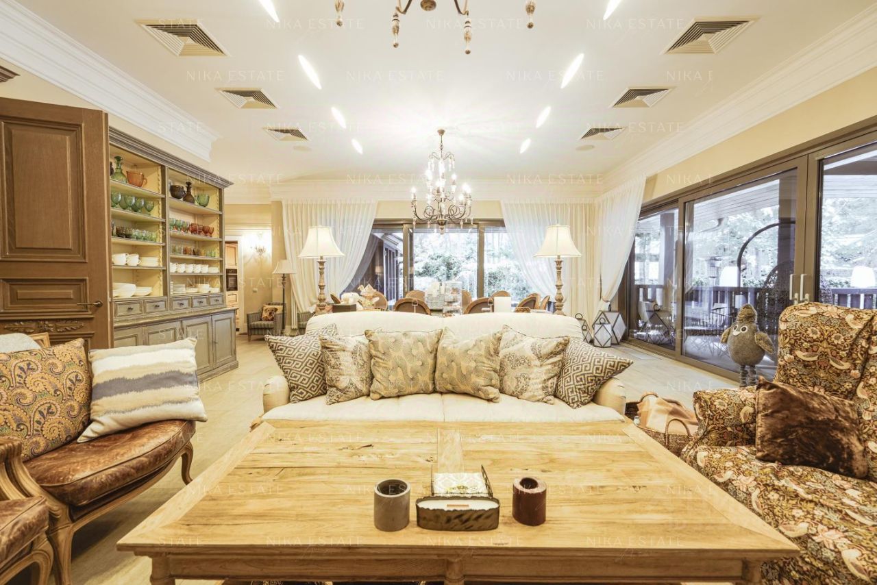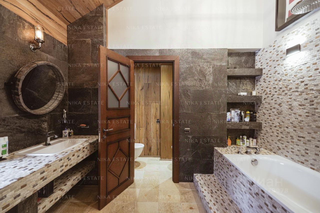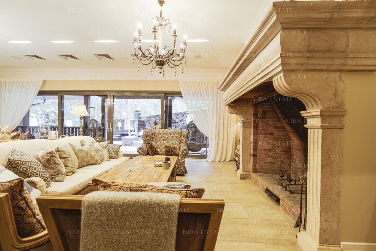 Дома в поселке выстроены в одном стиле, участки разделены между собой деревьями. Проведены центральные коммуникации: электричество, газ, вода, канализация, интернет. Дома построены из профилированного финского бруса Коntiо. В отделке использованы натуральные материалы: камень, мрамор, дерево. Коттеджи полностью меблированы и оснащены техникой от лучших европейских производителей. Заезжай и живи! В домах 10 спален, 9 санузлов. Множество мастер-спален, вместительные гардеробные, просторная гостиная, игровая зона, отдельная комната с домашним кинотеатром, каминный зал для уютных зимних вечеров, терраса для живописных завтраков и ужинов, винный погреб. Отдельный блок для персонала. Система умный дом и видеонаблюдение. Подогреваемые полы. Роскошный банный комплекс, где можно отдыхать душой и телом. Зона барбекю, беседка, на участке также есть поле с воротами для игры в футбол. Два газовых котла по 38 Квт. РАССТОЯНИЕ ДО ВОДЫ 280 МЕТРОВ. С ДВУХ СТОРОН ЛЕС.
