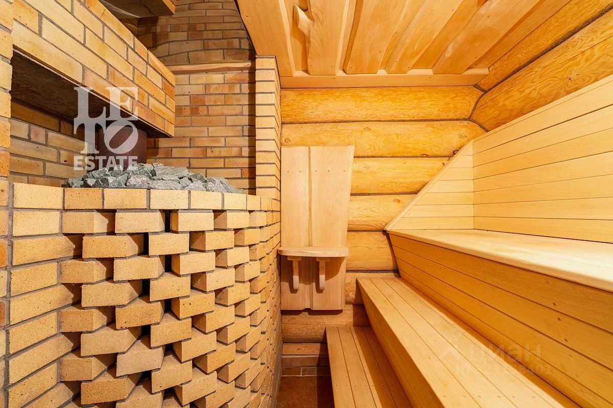 Гостевой дом с баней: Первый этаж: Прихожая, холл, барная зона, санузел, просторная гостиная-столовая, кухня, спальня с личным санузлом, а также зона спа с баней и купелью, оборудованной противотоком. Второй этаж: Две уютные спальни, ванная комната и гостевая зона дополнительное пространство для отдыха.