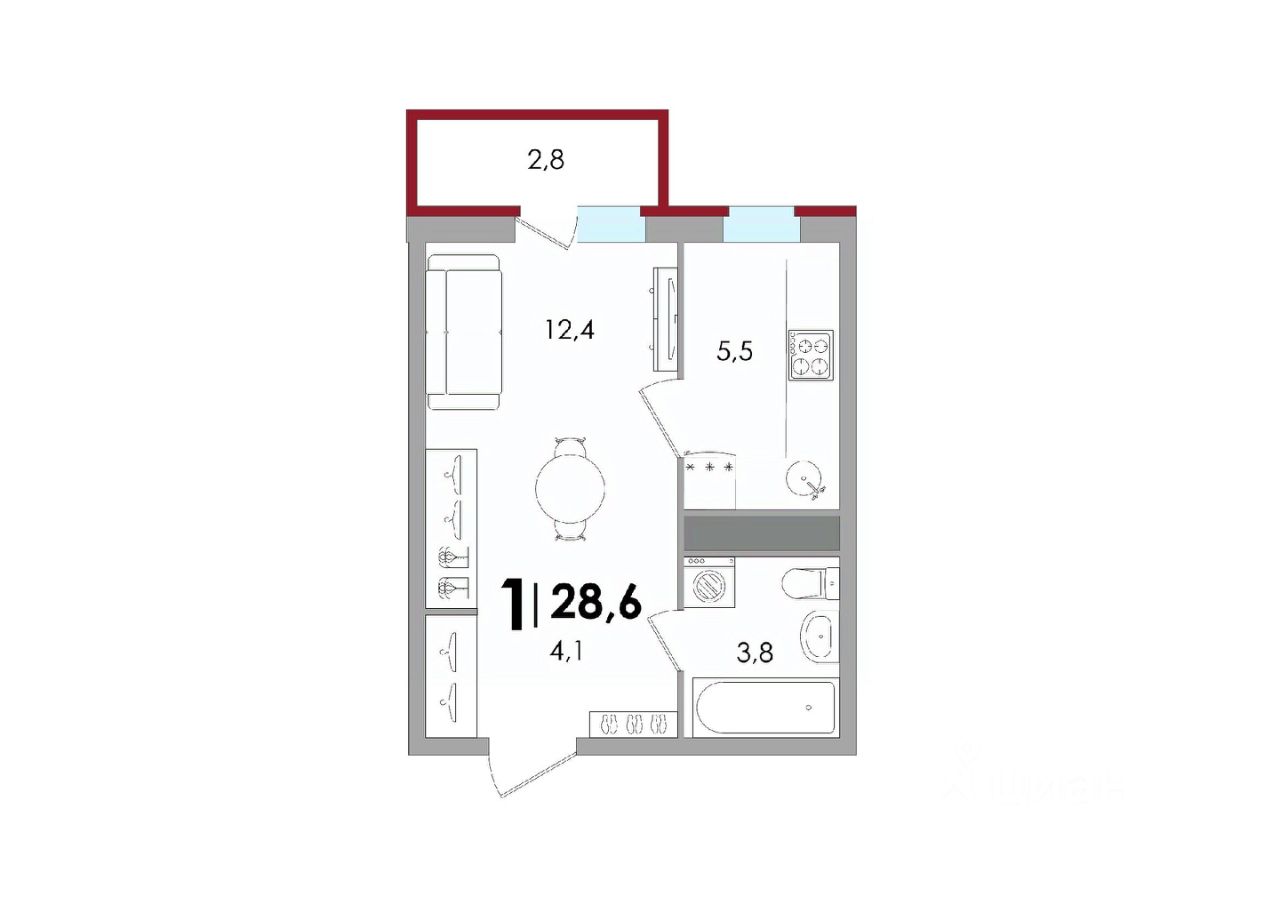 Общая площадь28,1 м2