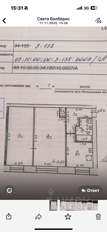 •Планировка: 2 смежные комнаты (16,3 м² и 14,4 м²), кухня 6,4 м², совмещенный санузел.