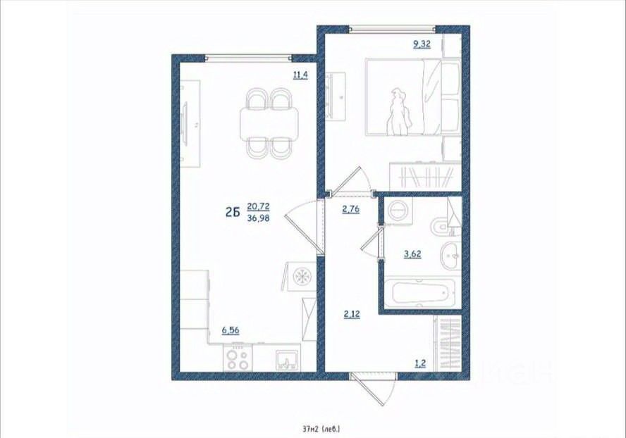 Евродвушка, в новoм доме. Дом сдан! С ОТДЕЛКОЙ - ПОД КЛЮЧ!!! Общая площадь 37 кв.м, кухня гостиная: 18,72 кв.м.
