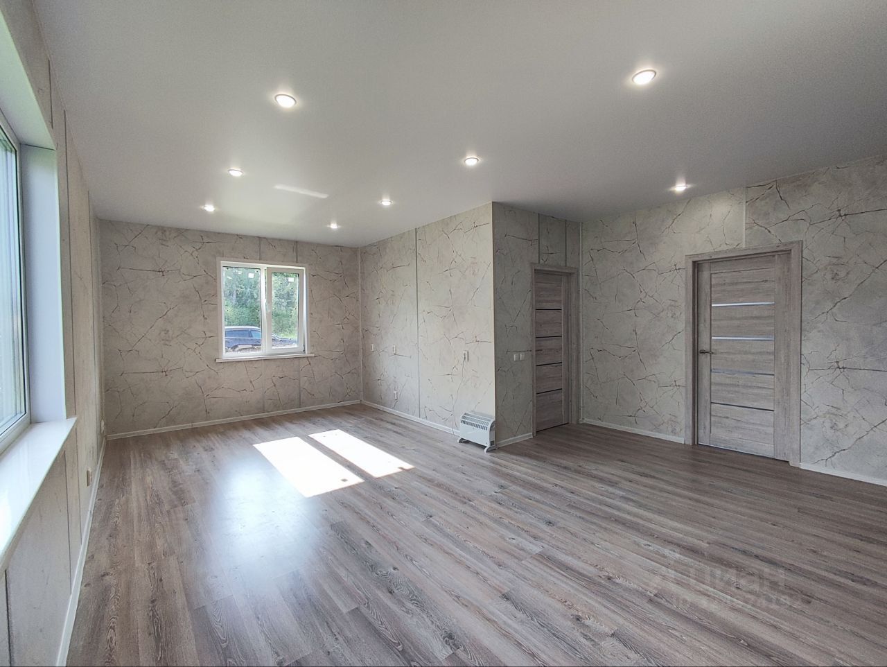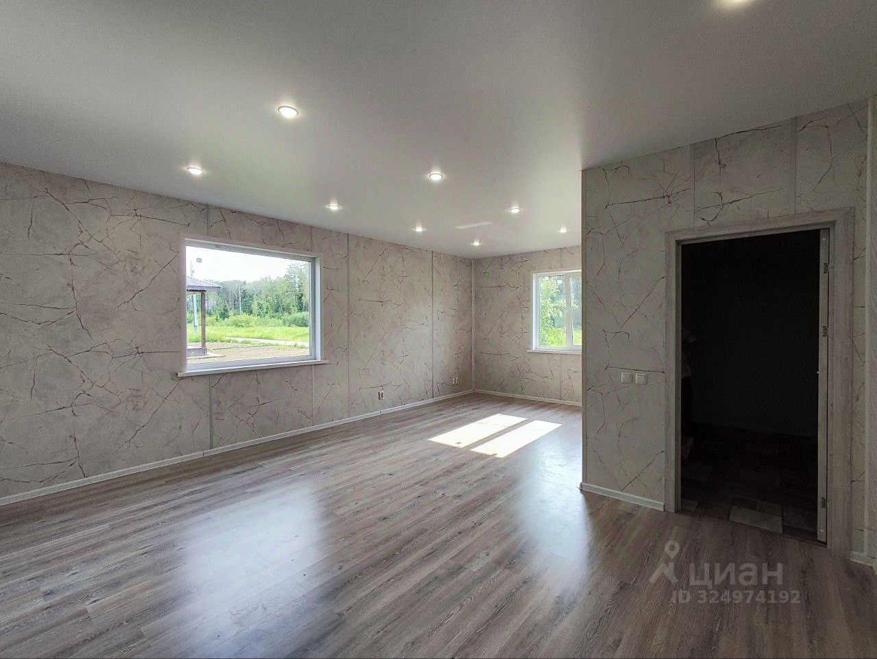 В доме большая кухня-гостиная, 3 просторных изолированных комнаты, большая гардеробная и холл. Дом готов к проживанию, натяжные потолки со светильниками, внутренняя обшивка стен из ЛДСП - 16 мл., окна пвх, пол ламинат, электрика разведена, установлены розетки и выключатели, совмещенный просторный санузел, установлена ванна, но при желании просто и легко можно заменить на душевую кабину!