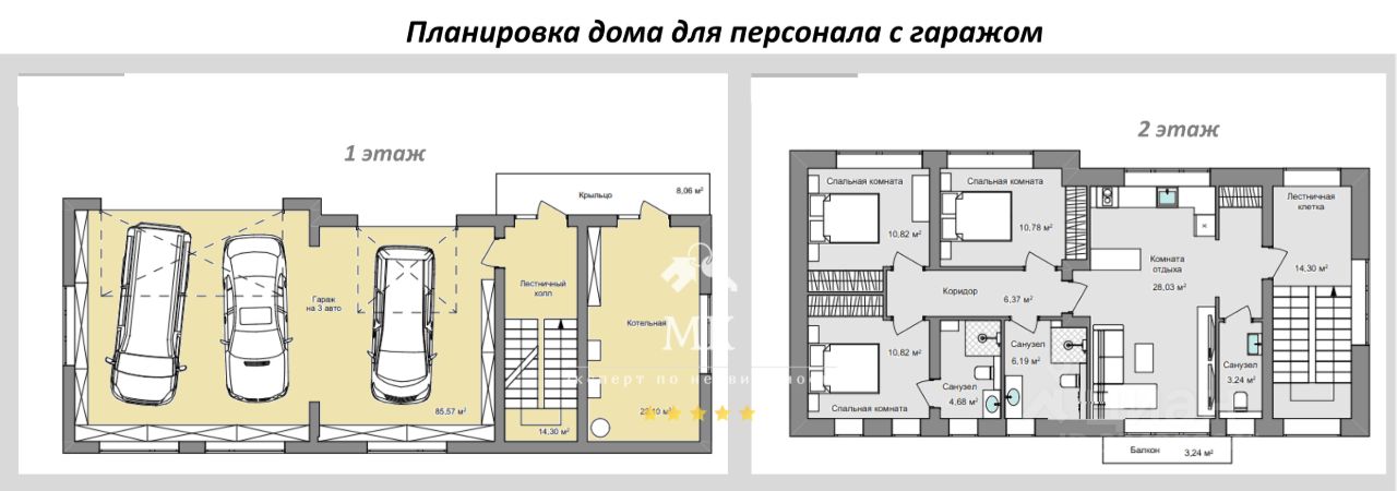 Дом для персонала (221 кв.м.) Полностью готов к проживанию. 1 этаж: Гараж на 3 машины, котельная. 2 этаж: кухня-гостиная, три спальни, 2 ванной комнаты.