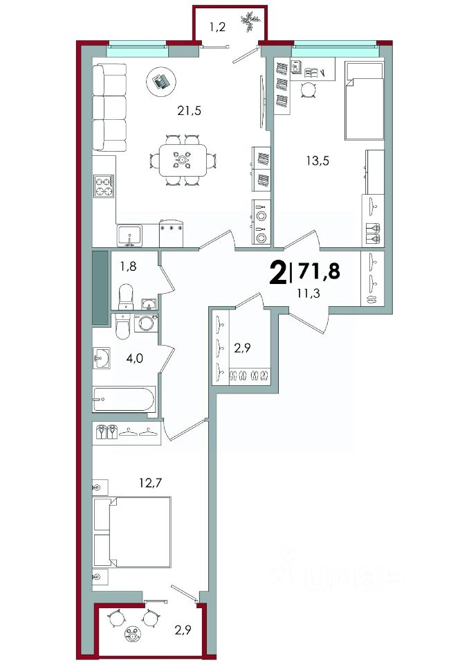 Общая площадь71,6 м2