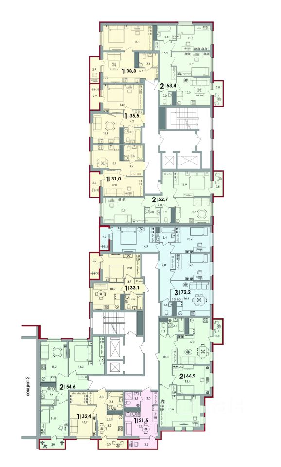 Квартира в эко-квартале комфорт-класса плюс ''Есенинские поля'': • Кирпичный дом с панорамным остеклением с 5 этажа. • Закрытая территория с круглосуточной системой видеонаблюдения. • Рядом ТЦ ''Есенин'' и термальный комплекс ''Новые Термы'' с бассейнами. • Порядок на территории поддерживает собственная управляющая компания. • Умные, развивающие детские площадки и спортзал под открытым небом. • Зелёный двор-парк и лаундж-зоны для отдыха на природе. • Филиал городской поликлиники. • Безбарьерная среда для мам с колясками, пожилых и маломобильных людей: вход с уровня земли, просторный проходной лифт. • Скейт площадка. • Детский сад ''Новые дети''. • Премиальные фасадные решения ''3D и баварская кладка''. • Мобильное приложение от застройщика.